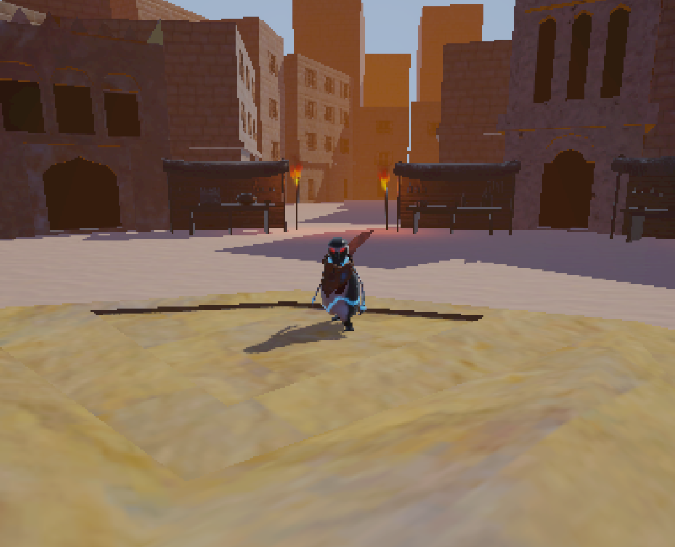 The visual style uses low-poly models, simple textures and camera behavior that evoke the era of PS1 and Nintendo 64 platformers. Sound design combines atmospheric motifs and arabic music to complete the mood.